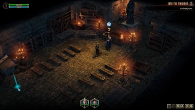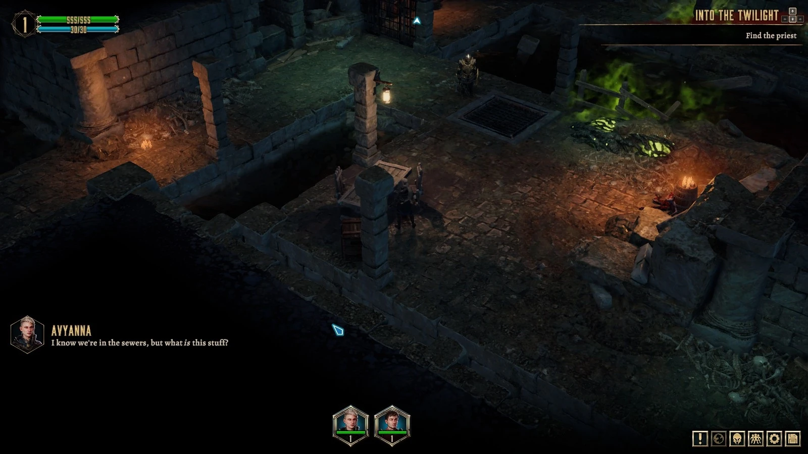 Вы получаете квест «Путь в сумерки» и отправляетесь в путь. Если вы купили Digital Deluxe Edition, то вы получаете ресурсы: 10000 золота, 5000 железа и дерева, 2500 волшебного флюса, 1250 божественной, стихийной и нечестивой эссенций, а также 5 очков навыков. Кроме того, вам выдадут Одеяния тёмных эльфов, Броню Сумеречных близнецов, Королевский меч Эбрисселя, Трость оракула Миллу и Осколок повелителя Невендаара. Идя по туннелям, вы замечаете горы гниющих трупов.