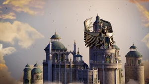 Ошеломлённые произошедшим, вы выходите из космического пространства. Со времён сотворения мира нога смертных не ступала на эти земли. Ваши смертные глаза обратили свой взор на эти древние стены — величественные, нетронутые временем, желающие оставаться загадкой для всех. Теперь это место станет вашим истинным домом. Такова ваша судьба.