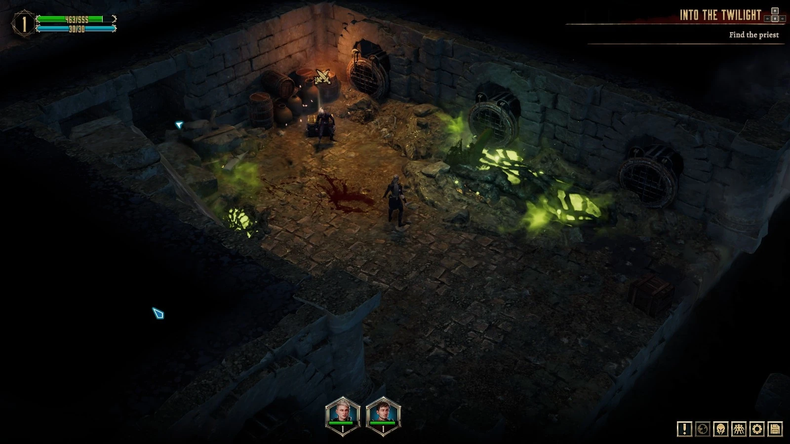 За дверью будет два пути: на север или на юго-восток. На севере вы встретите передвигающий имперский отряд, состоящий из солдата и арканиста. Хотя отряд и довольно слабый, лучше не тратить на него время и обойти. В конце юго-восточного пути вы найдёте комнату с двумя зомби.